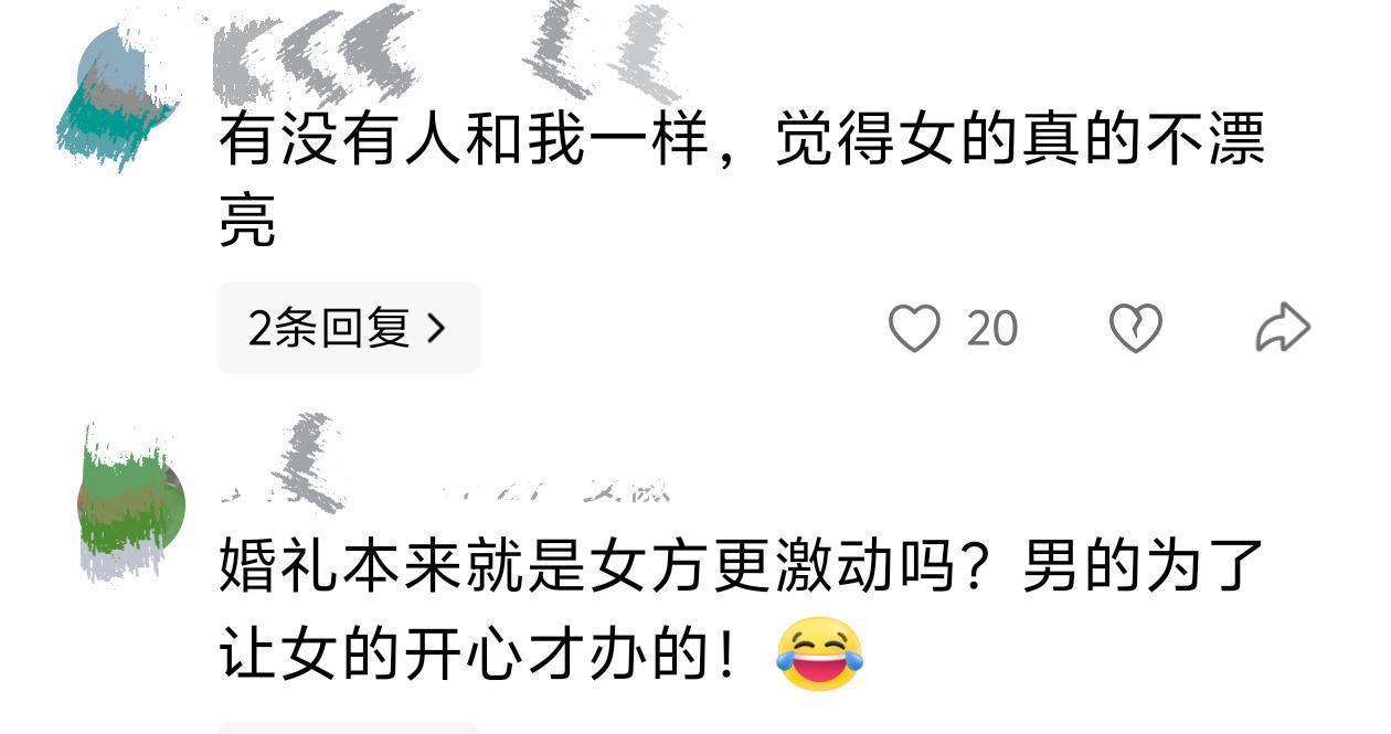 不是谁对谁错,就是节奏完全对不上——一个想把这天玩到满分,一个只想早点下班。但话说回来,婚礼这种强度,他累也正常,只是对比太明显。一句话:同一场婚礼,两种频率,最能看出真实相处模式。
